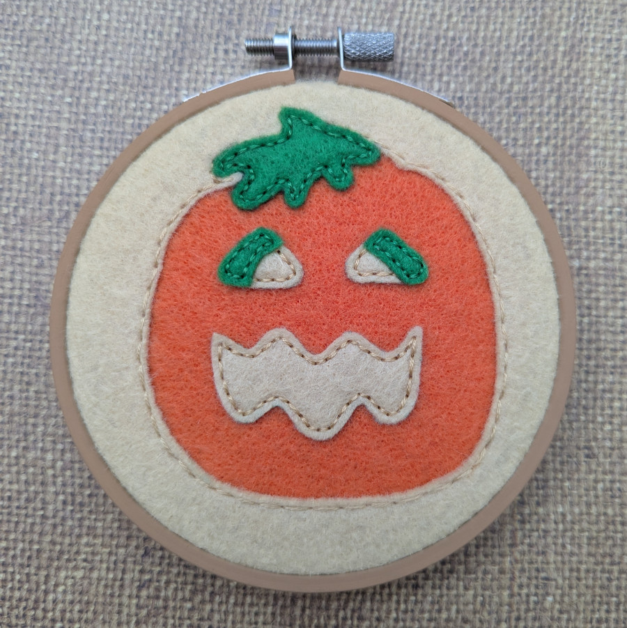 The official taste of October, but these are too cute to eat! Nothing says Halloween like these iconic handmade, 3 inch, cookie-like, felt embroideries. These are sold as a set of 3. The hoop is a durable painted wood, created with felt and fabric, able to hang it on the wall with a nail going through the opening at the top. It’s the perfect 'treat' for your home decor. No baking required!
